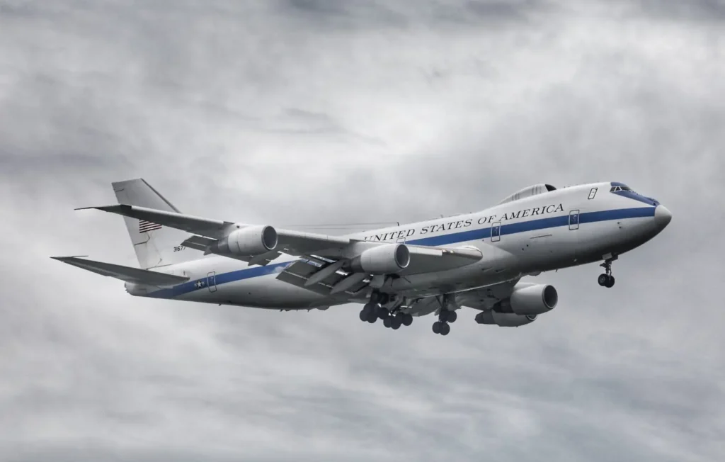 Imagine a modified Boeing 747 transformed into an indestructible command hub, capable of directing the nation’s defenses from 30,000 feet. That’s the E-4B Nightwatch in a nutshell. Nicknamed the “Flying Pentagon” for its ability to mirror the functions of the actual Pentagon during existential crises, this aircraft is engineered for the unthinkable: nuclear war, electromagnetic pulses, or any catastrophe that could cripple ground operations.At its core, the E-4B is the National Airborne Operations Center (NAOC), a mobile nerve center for top brass including the President and Secretary of Defense. Its specs read like a sci-fi thriller: