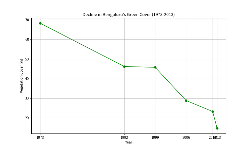 Graph: Decline in Bengaluru’s Green Cover (1973–2013)
