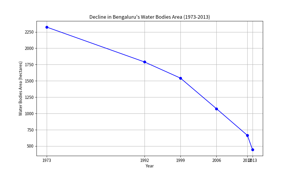 Graph: Decline in Bengaluru’s Water Bodies Area (1973–2013)